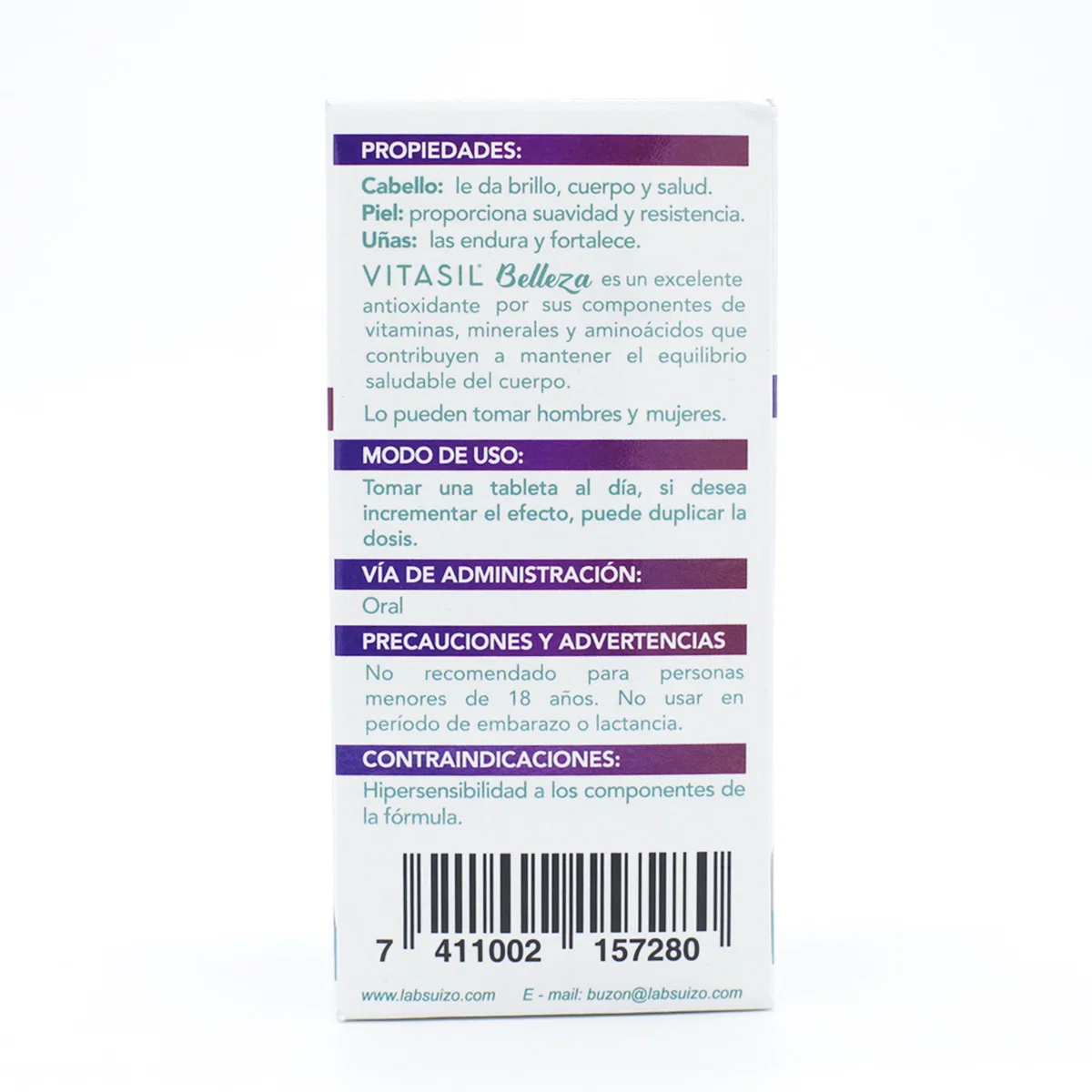 VITASIL BEAUTY is a nutritional supplement with vitamins, minerals, and antioxidants formulated to support overall wellness. Pack size: 60 tablets. Route of administration: oral.