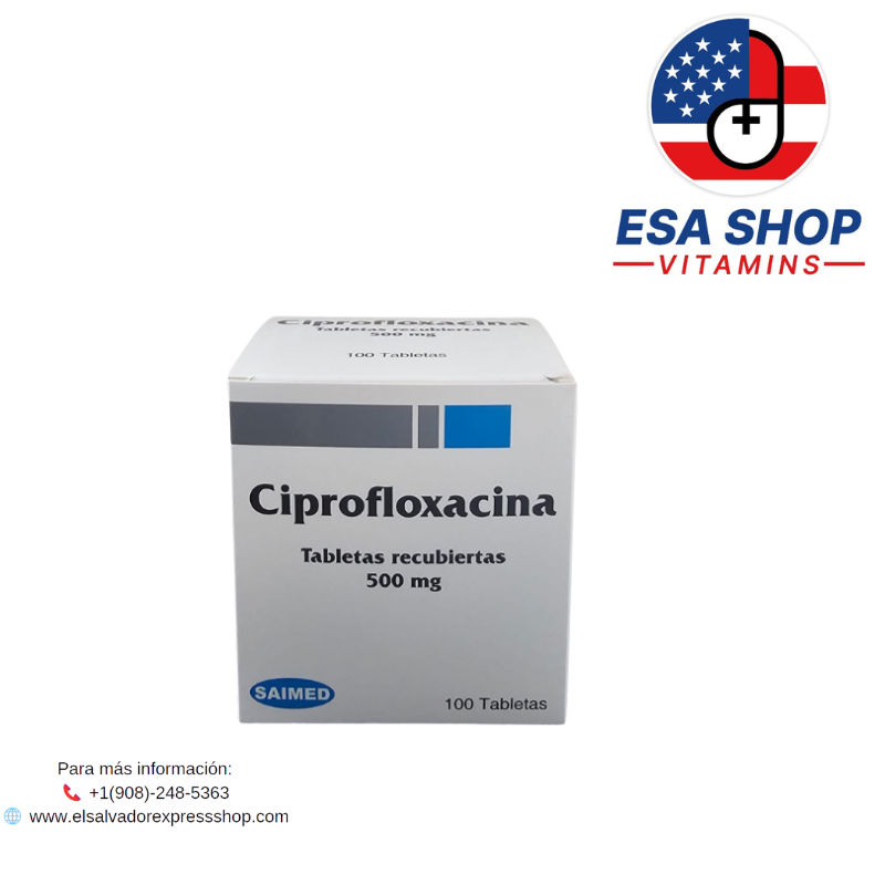 Ciprofloxacina 500 mg en tabletas recubiertas es un producto farmacéutico de administración oral, presentado en caja con 100 tabletas.