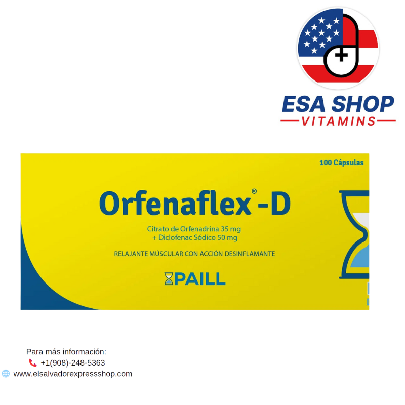 ORFENAFLEX-D es una combinación de Diclofenaco (AINE) y Citrato de Orfenadrina (relajante muscular), utilizada para el alivio del dolor y la contractura muscular asociados a lesiones y afecciones músculo-esqueléticas.