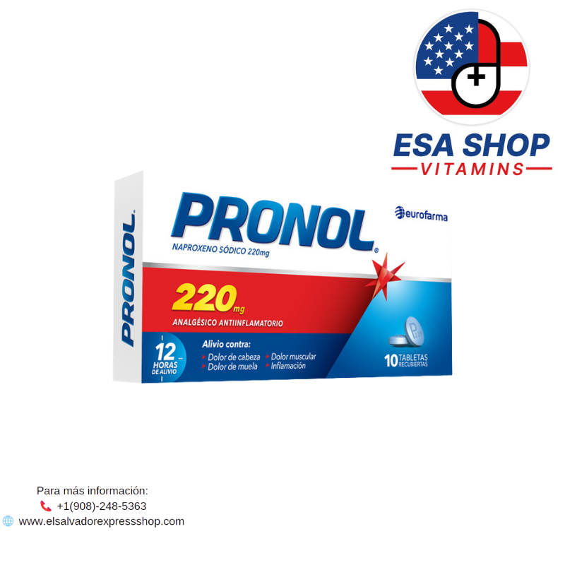 PRONOL® es un antiinflamatorio no esteroideo (AINE) formulado con Naproxeno Sódico 220 mg. Proporciona alivio prolongado del dolor, la inflamación y la fiebre, con una duración de hasta 12 horas.